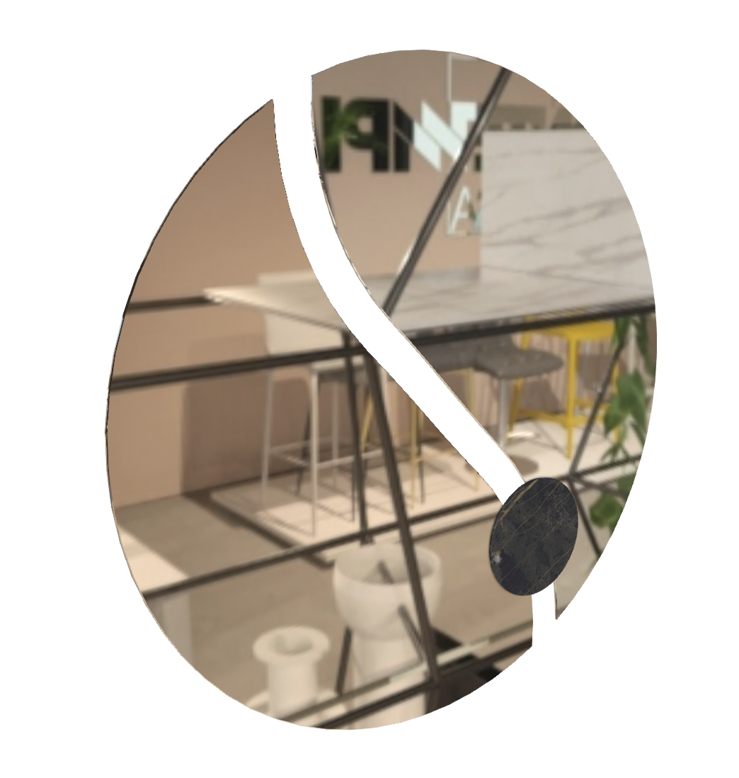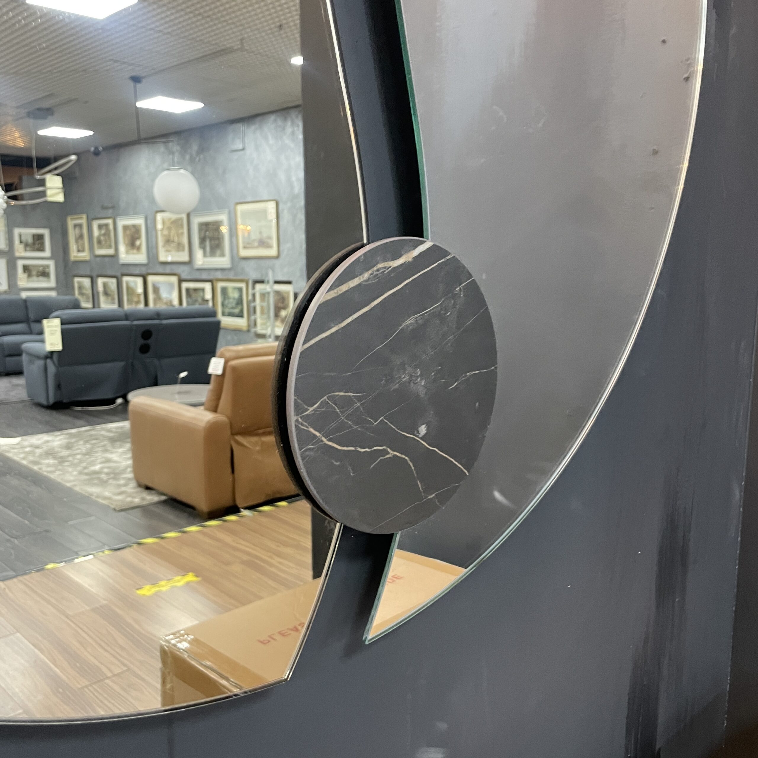 Mirror with wall mounting in two positions, composed of two tops and one decorative detail.