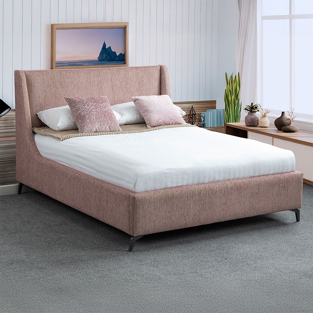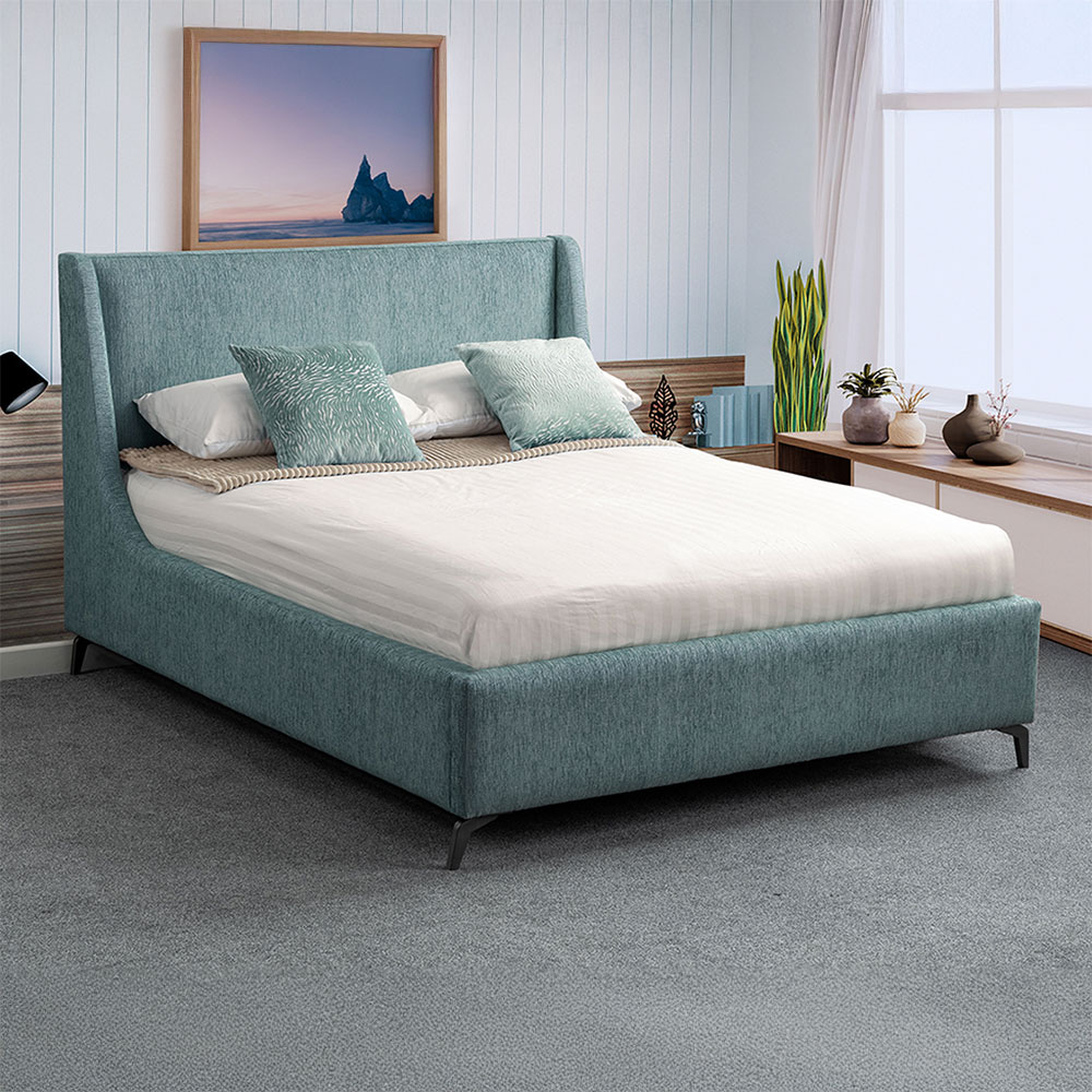 Sitting on striking metal angular legs, the Anise adds a contemporary feel to any bedroom. It’s available in three double size options and upholstered in a choice of luxurious fabrics to suit your space and style choose from: