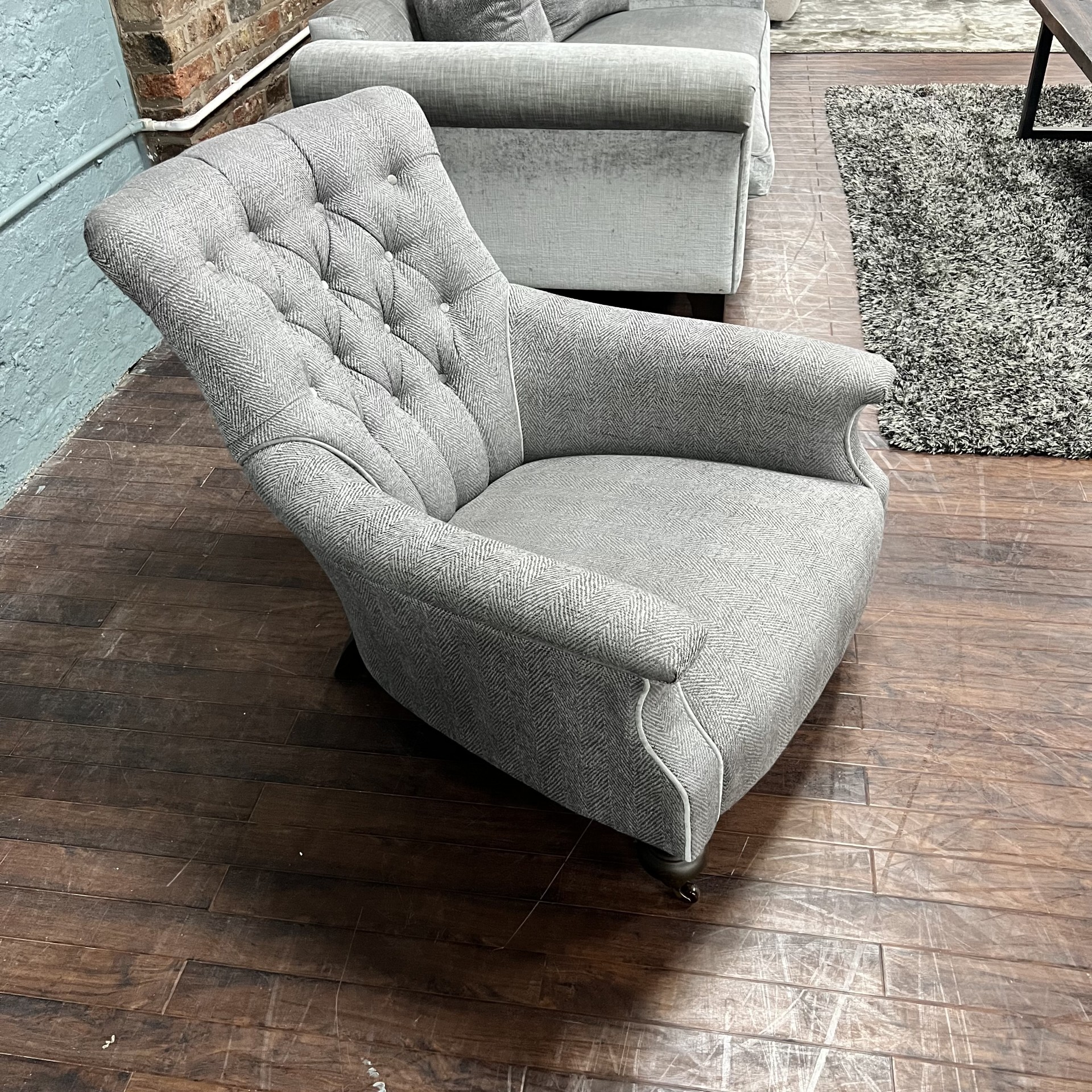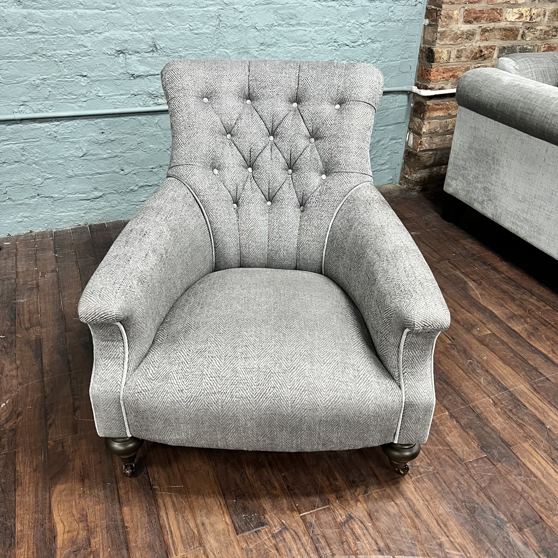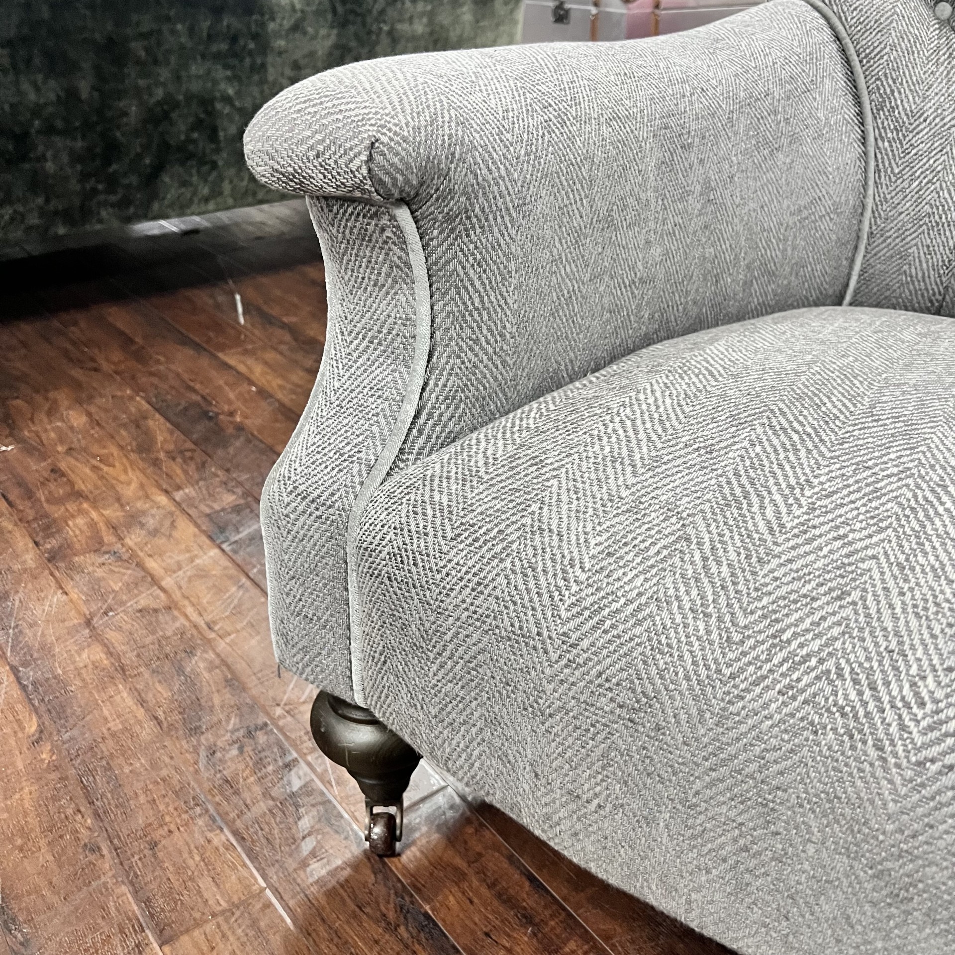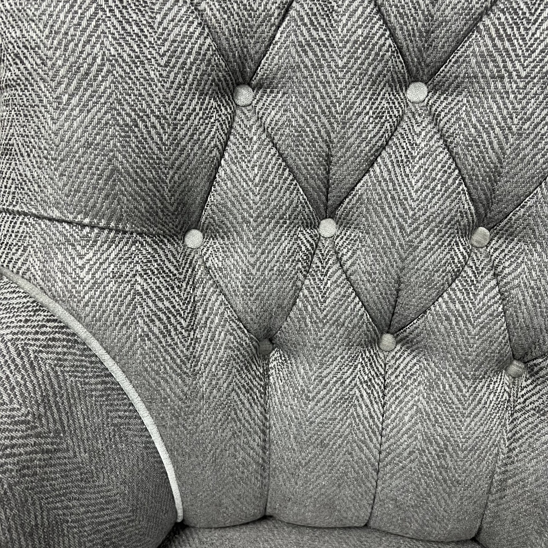 Silver/Grey Herringbone Fabric, Trimmed in Silver Velvet This Fabric Is Now Discontinued