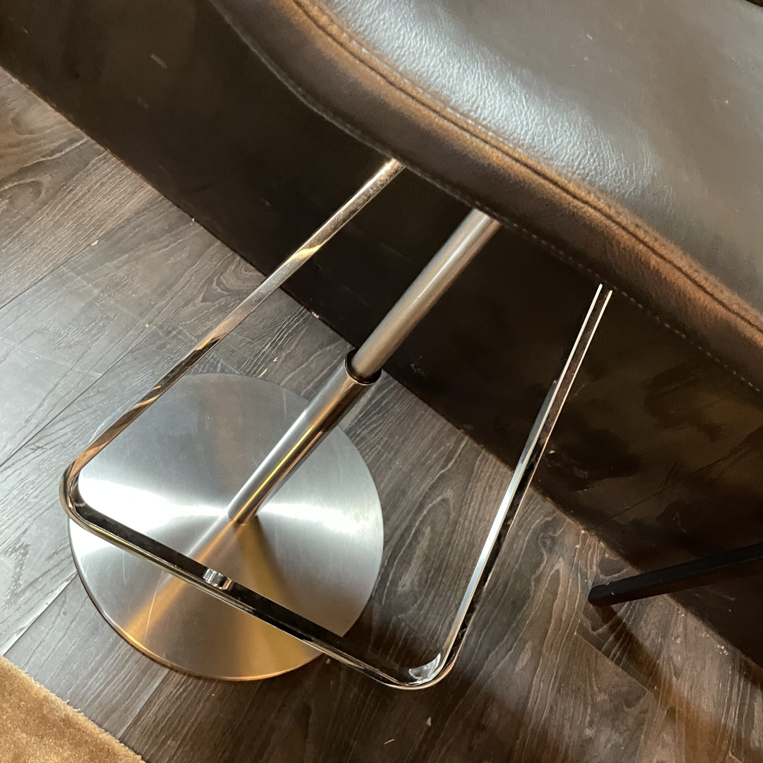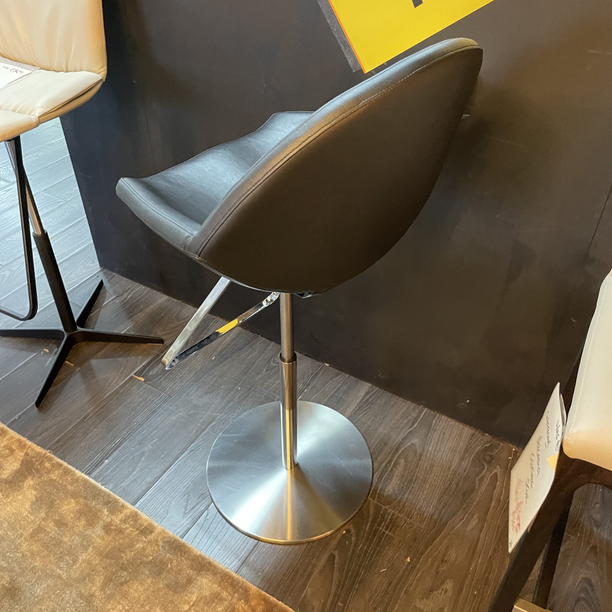 Black Eco- leather with a metal base.