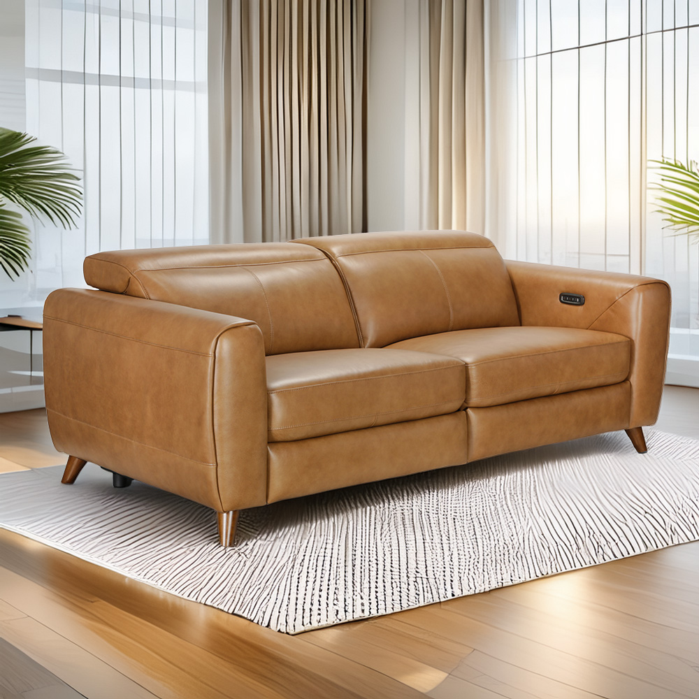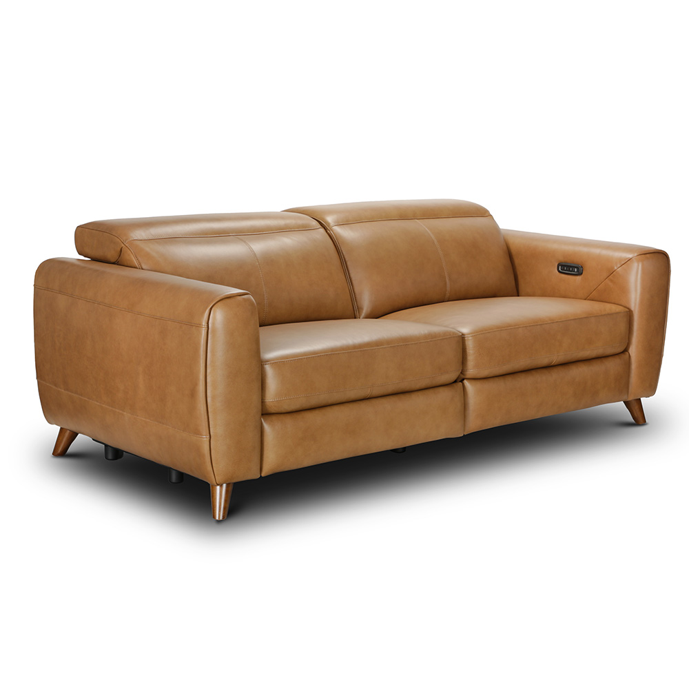 Elevate your living space with the Mai, a modern power motion sofa with a subtle retro flair, thanks to its open-base design and warm walnut-toned legs. Its sleek yet generous proportions offer both style and comfort, making it a versatile choice for contemporary or vintage-inspired interiors. The sofa is comprised of two 1 armed units that fix together on site making delivery easy.