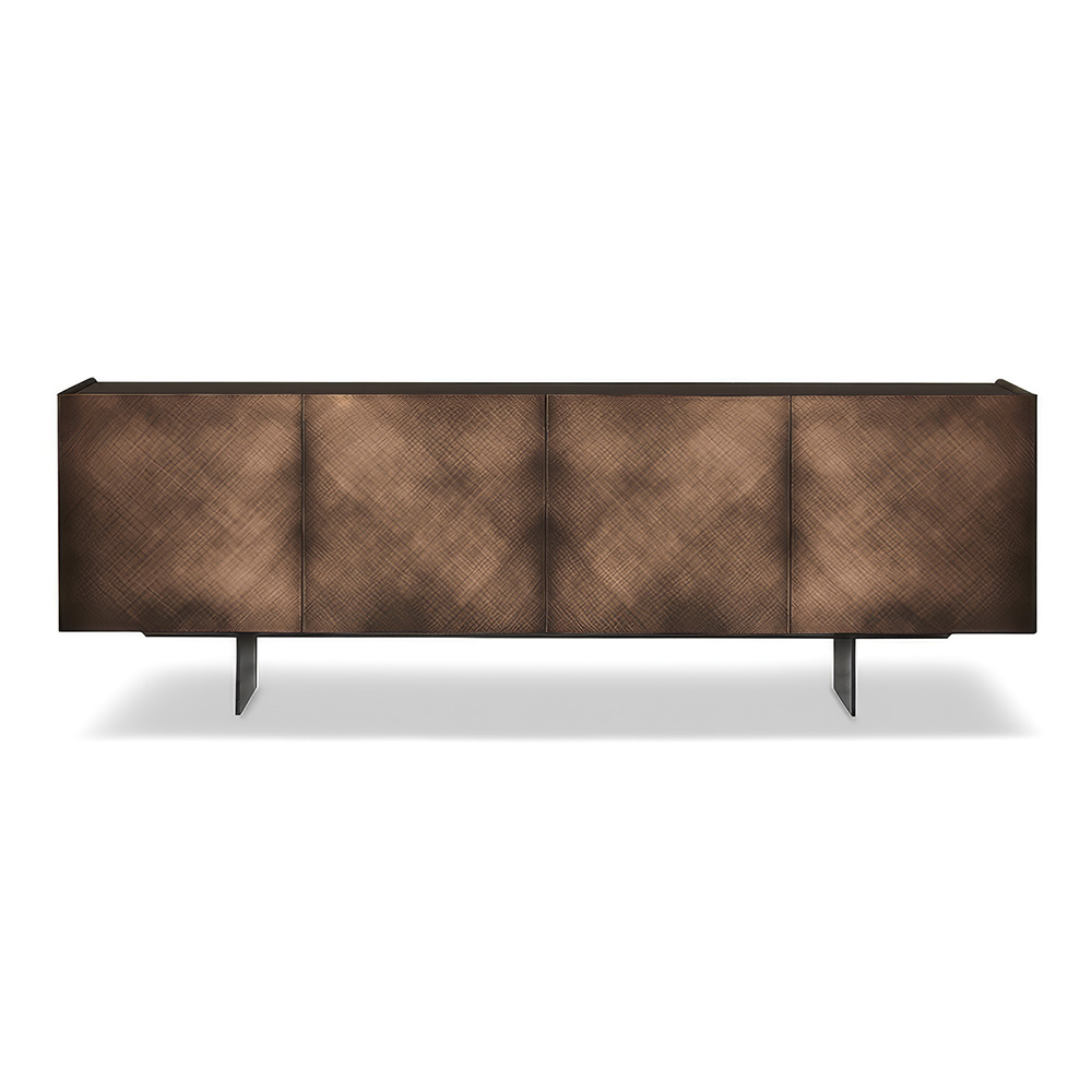 The Arizona design sideboard is embellished with the Brushed finish, handmade by skilled craftsmen, which decorates the doors with delicate metallic scratches.