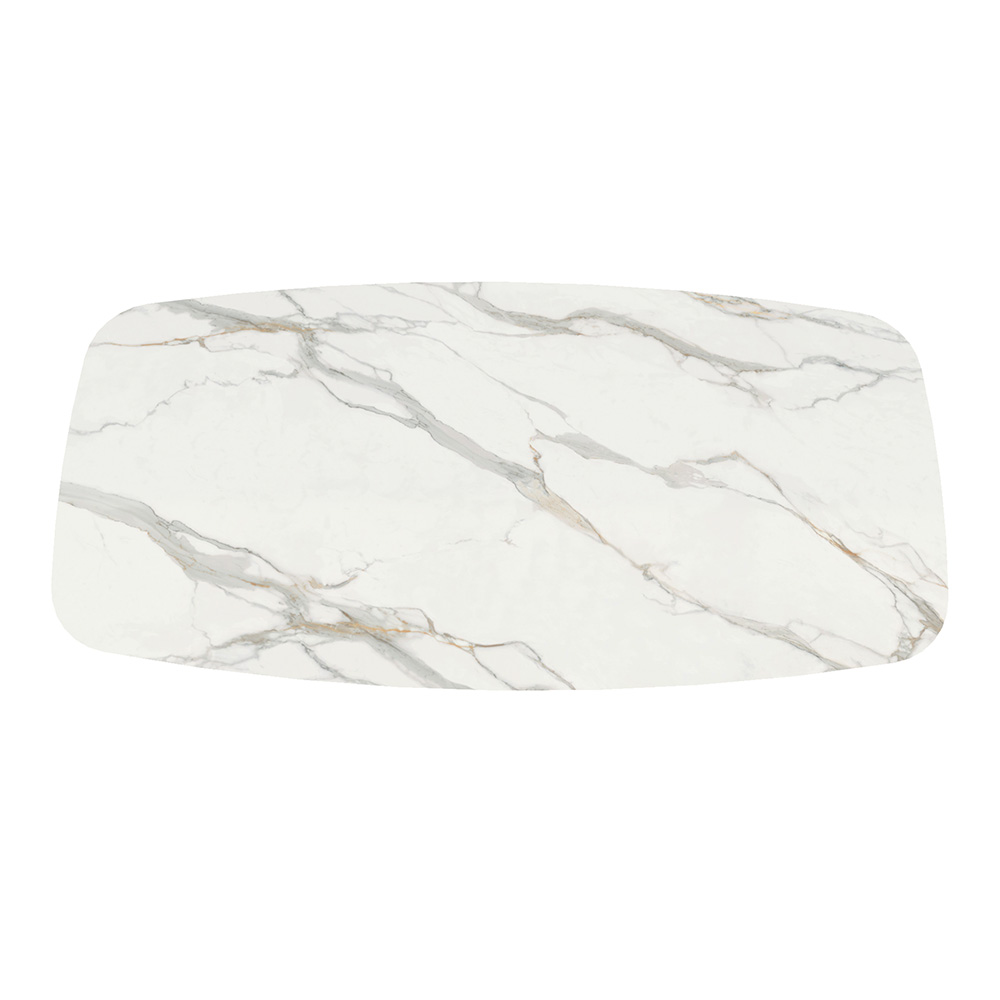 Table Top – CM012 Glossy Calacatta Supermarble – The Bontempi Casa SuperMarble is manufactured by matching glass with porcelain stoneware which combines beauty and functionality. This material is extremely strong if compared to natural stones and results in an elegant and sophisticated aesthetically impact along with great performances.