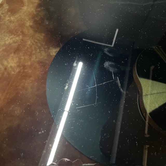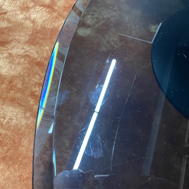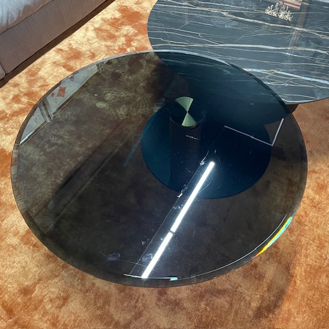Tops : Swivelling Bevelled Fume Glass Top 90cm Dia with KM08 Glossy Portoro Ceramic 100cm Dia