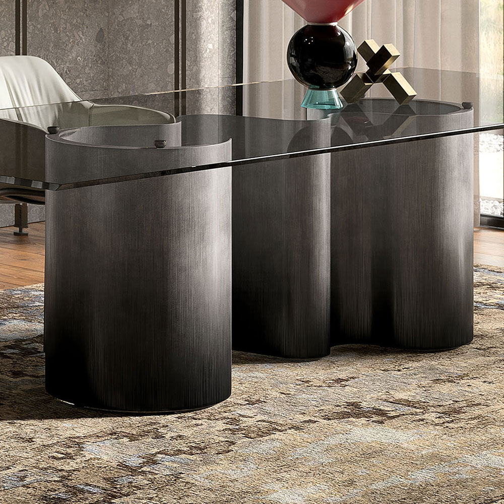 Its sinuous base has been cleverly designed to change in appearance depending on the position from which it is viewed. Full and empty cylinders swap places with the changing light and shadow when viewing this designer tablefrom different angles. This makes Papel models both slender and imposing at the same time, especially if you choose to enhance the base with a finish from the Brushed range: hand-brushed by skilled craftsmen. The curved metal base is made in one piece, adding to the quality of this modern dining table.